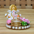 eCraftIndia Lord Ganesha Idol on Decorative Plate with Tea Light Holder